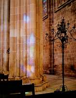 細長いステンドグラスの窓から差し込む柔らかい日差しが大理石の壁面に虹のような絵模様を描いてくれる。