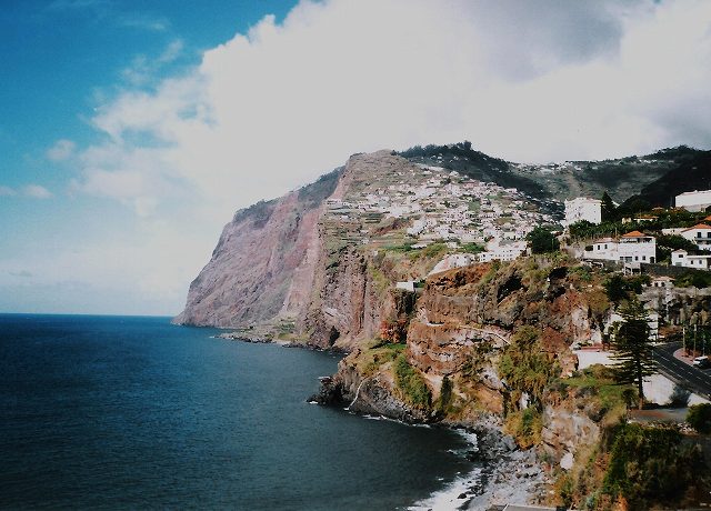 海側は斜度80度ほどの赤く生々しい絶壁になっている。